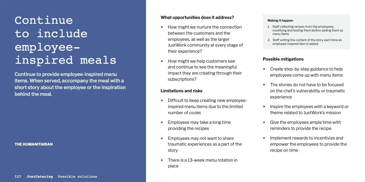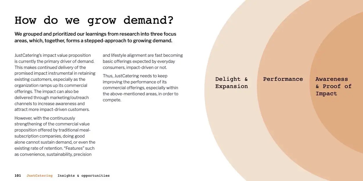 JustWork is a nonprofit that provides dignified and gainful employment to individuals facing barriers in the traditional workforce through its three social enterprises — JustPotters, JustCatering, and JustRenos. Gearing up for growth as internal operations continue to stabilize, JustWork asks Sponge to identify facilitators and barriers to revenue growth, and unlock actionable opportunities for each of its three social enterprises. After six months of research, synthesis, and ideation, we created a report that guides JustWork through our findings and suggested solutions in the hope to provide the organization with guideposts and actions to take for each of its businesses, now and in the future.