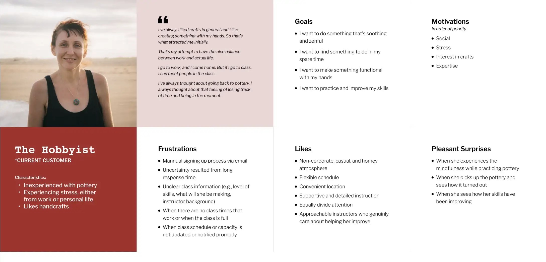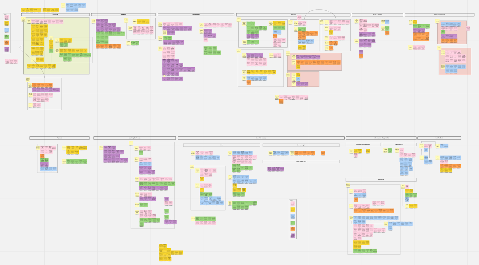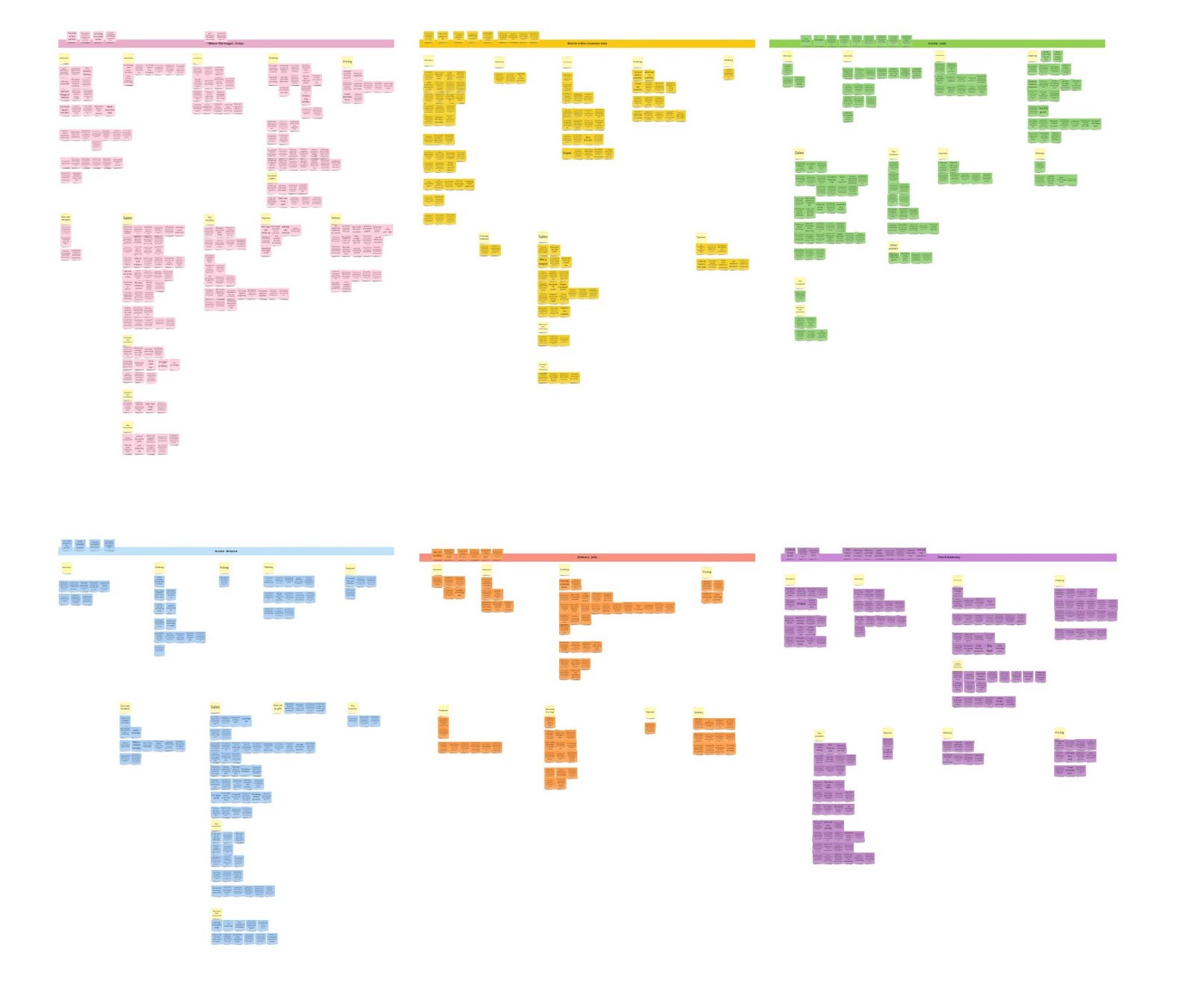 With this goal in mind, we synthesized our interviews and conversations by creating journey maps that inform us on the various points of friction and delight at different stages of the customer experience; we organized interview quotes into affinity maps to uncover common themes and the connections between them; we also developed customer archetypes to help us understand common drivers, circumstances, and needs that can inspire opportunities for design.